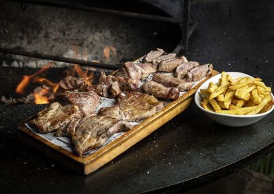 En LOS PICAZOS cocinamos con leña de encina y sin artificios. El producto es el protagonista: carnes maduradas, pescados frescos, verduras de temporada… y platos pensados para compartir, para probar, para repetir.